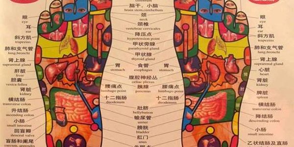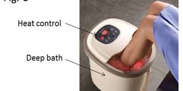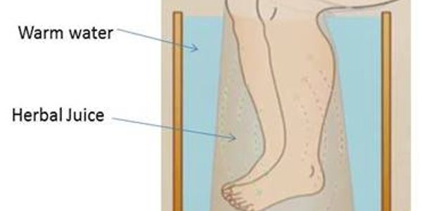 20-30 minutes foot/leg warm bath soak with an individualized recipe of herbal juice prescribed and prepared by our clinic (Fig. B,C) and Tui Na (a Chinese style massage) (Fig. B)